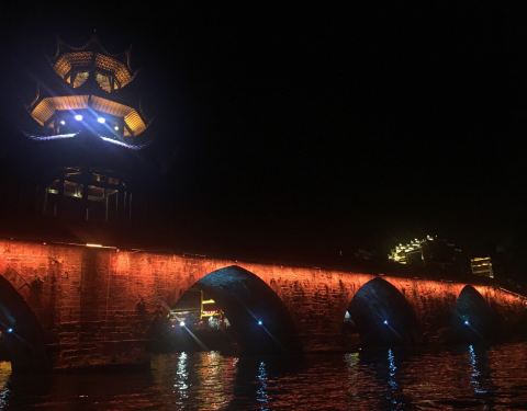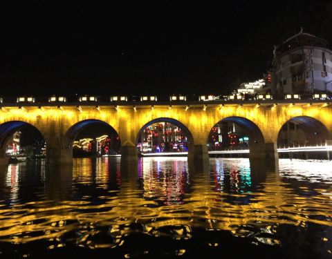 镇远古桥最美的莫过是夜景,走在古城步行街上,古城是热闹,灿烂的,如果船游古城,两岸灯光倒映水中...