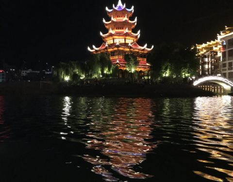 但又觉得来一趟不容易,还是坐船观夜景了,这一趟半小时走下来,还是觉得坐船是对的,游船开的很稳,...本来觉得夜景在岸上也一样看,但又觉得来一趟不容易,还是坐船观夜景了,这一趟半小时走下来,还是觉得坐船是对的,游船开的很稳,传上播放的有声导游,讲解每个个景点的特色和来历故事,对镇远古镇的印象会更深...本来觉得夜景在岸上也一样看,但又觉得来一趟不容易,还是坐船观夜景了,这一趟半小时走下来,还是觉得坐船是对的,游船开的很稳,传上播放的有声导游,讲解每个个景点的特色和来历故事,对镇远古镇的印象会更深一些,青龙洞,祝圣桥,甚至是每个码头的故事等。 展开