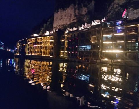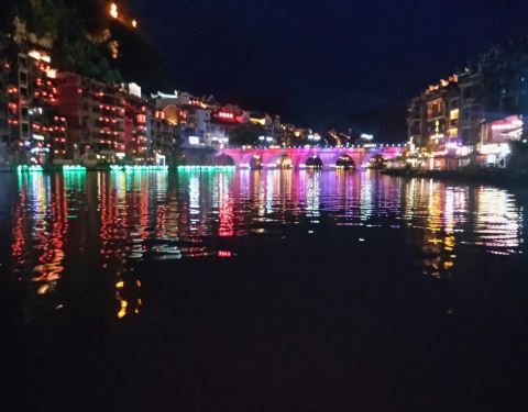 镇远古城的确很美,舞阳河蜿蜒流过,灵动秀丽。 全天都可乘船观光,但到晚8点后才看到灯光璀璨的效果镇远古城的确很美,舞阳河蜿蜒流过,灵动秀丽。 全天都可乘船观光,但到晚8点后才看到灯光璀璨的效果。 比较遗憾的是船上不讲解。