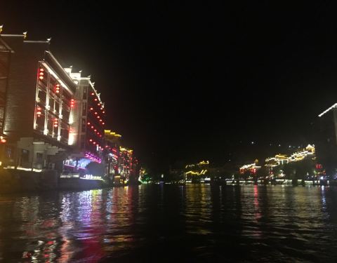 本来觉得夜景在岸上也一样看,但又觉得来一趟不容易,还是坐船观夜景了,这一趟半小时走下来,还是觉得坐船是对的,游船开的很稳,传上播放的有声导游,讲解每个个景点的特色和来历故事,对镇远古镇的印象会更深一些,青龙洞,祝圣桥,甚至是每个码头的故事等。