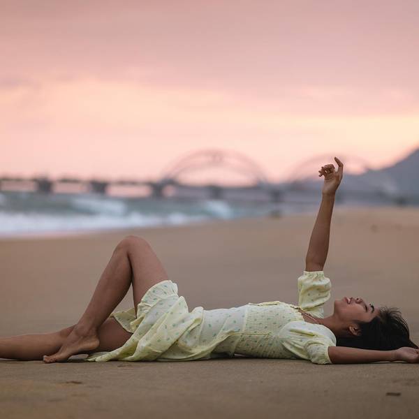海南的黄昏总是这么美,老天慷慨的给了这片海岸绝美的夕阳。晚霞在空中跳起了舞,不断地变换着各种颜色,而海浪从不远处奔来,冲上这片细软的沙滩,拍了一下我们脚掌心,发出沙沙的声音,好似在给天空的晚霞伴奏。忽然觉得时间静止了,我们忍不住沉浸在这片最原始的海南里。我们两干脆就躺在沙滩上,欣赏着大自然的舞台。 展开