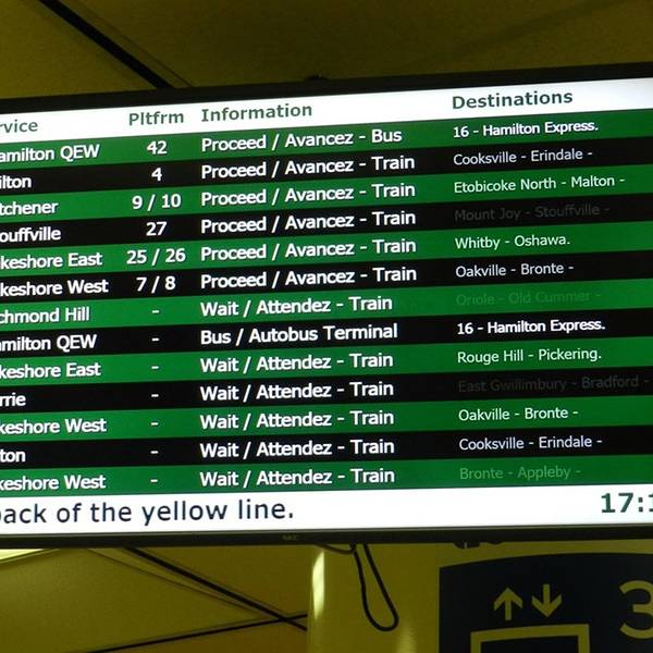 位于市中心的联合火车站(Union Station)是一个重要的城际和通勤火车/巴士枢纽。火车站建于1927年,被认为是北美最大最令人惊叹的火车站之一,在1975年被指定为国家历史遗址。今天的联合火车站不仅是加拿大最繁忙的客运设施,还因为其学院派气势恢宏的建筑而成为多伦多定标性的建筑之一,并于1975年列为“加拿大国家史迹”。从车站出来便是林立的高楼,让人有历史与摩登交错的感觉,出车站往前走几百米便可以欣赏到安大略湖的风光。