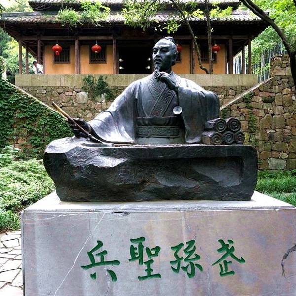 ...一个老房子,门口有兵圣孙武的雕像,这里是孙武归隐的地方,空气质量很好,有兵法禅院等几个部分组成