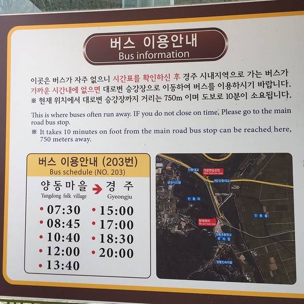 今天留了一整天的时间去良洞村,去良洞村的车子非常少,1个小时一班车,之前我有在info centre问过,他们会给你一张打印的车次表。就在汽车站坐车过去,到了良洞村以后,上面也会写车次表,要算好时间,正好可以...