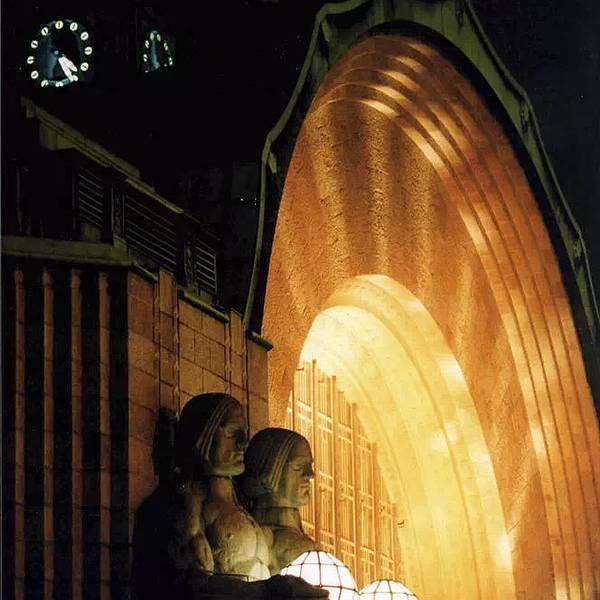 芬兰赫尔辛基火车站1916年建成,是本世纪初车站建筑中的珍品,也是北欧早期现代派范畴的重要建筑实例,它轮廓清晰,体形明快,细部简练,既表现了砖石建筑的特征,又反映了向现代派建筑发展的趋势。赫尔辛基火车站的设计者是著名建筑师艾里尔·沙里宁,赫尔辛基火车站是他的浪漫古典主义建筑的代表作,虽有古典之厚重格调,但又高低错落,方圆相映,因而生动活泼,有纪念性而不呆板,被视为20世纪建筑艺术精品之一。火车站的外表面主要由芬兰花岗岩铺设,它最为显著的特征就是钟楼和两对抱着球灯的雕像。每到夜间,位于正门两侧的球灯就会被点亮。该火车站每天接待约20万名乘客,是芬兰访客最多的一幢建筑。 展开