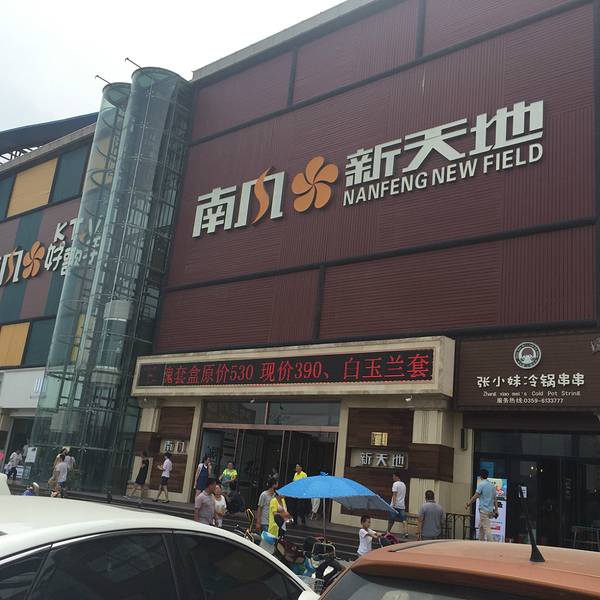 南风新天地【位于】盐湖区今日步行街,南风广场西侧。【交通】乘坐公交2路、1路、18路、8路、4路等到【南风广场】站下,步行百十米,即到。【关于南风新天地】这个商场的地理位置算是南风商圈核心的位置了,每天的客流几乎也是整个盐湖最高的一个地方了。商场至今新开不久,偶尔的一次机会,去吃盐湖的唯一泰国菜,才找到了这里,记得这里好像最早是个什么海鲜楼,不知道怎么就改造成商城,不过,个人觉得改造很成功。上下四层,有扶梯,也有直梯,很方便。商场门口的停车位分两种,一种是自行车的,一种是汽车的,额,好有爱,嘿嘿。商场大致业态分为:一层服装、首饰等;二层主要是一些品牌服饰;三层是一些散货小铺;四层都是吃的地儿,每家基本都是主题餐厅,很不错的(PS:家家都有团购,超划算的,一定记得团购,省钱大招)。这里重点我不想说商场品牌那些,下附图大家可以自己看看,我想想说说的的特色。NO1,新商场,我没有找见商场的客服台,但是有一家特别大的“裁缝店”,可以修改长短不合适的衣服,现在随着慢慢的商场化,这种裁缝店很少见了,不过标价真不低。NO2,商场无论从装饰还有吊灯以及导视牌都特别有特色,很卡哇伊的感觉,商场貌似从每个细节都凸显主题的感念。NO3,商场在进门直梯的旁边放了一个饮水机,公共免费的,对此行为,赞一个。总之呢,这个商场给我的感觉很新颖,算是当地一个很有特色的商场了,推荐大家去。整个消费不贵,人均购物200元左右。