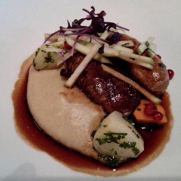 诺卡餐厅,赫尔辛基市十分具有特色的北欧菜系餐厅,比较适合去吃正餐,当然,因其靠近大海的地理位置,你也可以去那里喝喝咖啡,听听海风,看看海鸥和过往的游船。店面门口十分抢眼的螺旋桨和轮船锚,一看就是与海与故事有关的餐厅,红砖配着锈掉的铁器,十分的抢眼,路过想不注意都不行。北欧风情的装饰风格里面依旧是裸露的红砖装饰,藤条编椅,配着酒红色的靠垫、桌子,如同一个温暖的小窝,置身其中,就想让人在这里静静做下,开始述说一段与自己有关的小故事。前菜烤鸭肉驯鹿肉,只有5分熟肠和鱼肉的混搭特色的烟熏三文鱼。 在诺卡餐厅享用美食,就如他们在餐厅介绍中所说的那样,每个人都带着自己的故事来到诺卡,带着各自不同的心情品尝美食,美食的味道因没人的经历不同也各自不同,到底同一道菜,味道如何?还需要你们自己去品尝了。