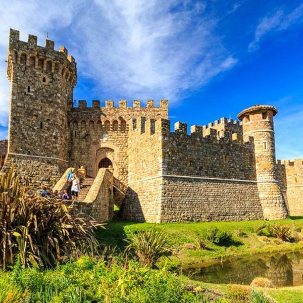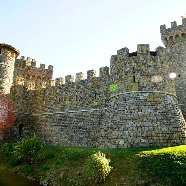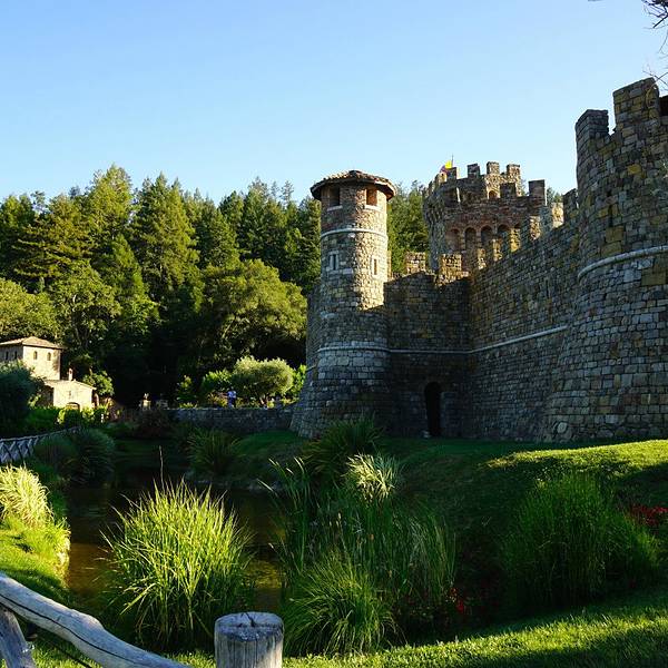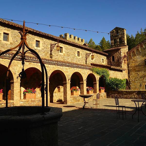 位於纳帕谷Calistoga市南端的丘陵之上有一座城堡“Castello di Amorosa”,在意大利语中的意思是“爱的城堡”。这是一座用时15年建造而成的纯正13世纪托斯卡纳城堡,它拥有高耸的城墻和5座防御塔,周围是30多英亩的自有葡萄园。