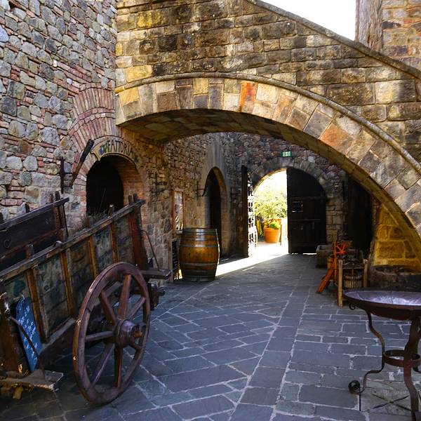 位於纳帕谷Calistoga市南端的丘陵之上有一座城堡“Castello di Amorosa”,在意大利语中的意思是“爱的城堡”。这是一座用时15年建造而成的纯正13世纪托斯卡纳城堡,它拥有高耸的城墻和5座防御塔,周围是30多英亩的自有葡萄园。它的主人Dario Sattui是第四代酿酒师且是坐落於St. Helena 市的V. Sattui酒庄的拥有者。 华尔街日报(Wall Street Journal)称Castello di Amorosa为“必到的旅游景点”。并且近期的康特拉科斯塔时报(Contra Costa Times)把Castello di Amorosa列为全美国最佳酒庄旅游景点之一。 Dario Sattui经过了几十年对意大利和欧洲的中世纪古堡的考察,规划和研究,于1994年开工建造自己的城堡。城堡拥有141000平方英尺的面积,107间房间(其中95间是用於酿酒或藏酒),8000吨的手工雕凿方石,8层建筑(4层地上,4层地下),900英尺长的洞穴,一个绘有意大利壁画的宏伟的大厅,还有用来防御的城墙,吊桥和护城河。忠於旧世界城堡的构造,Castello同样拥有地牢和酷刑室,秘密通道,庭院,凉廊,教堂,牲畜棚,以至于用於制作面包的室外烤炉。除此之外,拥有古罗马十字交叉拱顶,12000平方英尺的橡木桶大厅,可称为全美国最叹为观止的藏酒室。 然而这座城堡,仅仅是我们一些纳帕谷最好的葡萄酒的布景。城堡周围的葡萄园里种植著低产并极有风味的赤霞珠,梅洛,普里米蒂沃和桑娇维塞葡萄。出产享有盛誉的意大利式葡萄酒,易於搭配各种饕餮美食。城堡目前仅年产25,000多箱葡萄酒,并且只在酒庄面向顾客直销。配有导游的酒庄游览包括了单独品酒室品酒,需要预约。若只需品酒则无需预约。