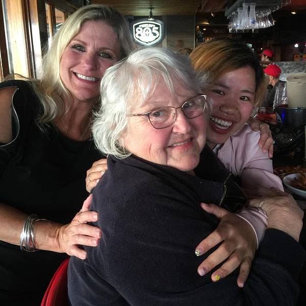 我:顿时不知道如何接下去,只记得她说了这句话之后,内心被一击,我还未成婚,未有自己的孩子,可是当听着她说,人生最快乐的事就是生了自己的女儿们的时候,我想,也许这就是爱的力量吧!后来她女儿过来,言语间,无不流露出对妈妈的感恩,与骄傲。老奶奶离过婚,但是很坚强的把两个女儿带大,吃了很多苦,但永远没有放弃希望。是啊,人生也许就是这样,这里恰好想借用阿甘妈妈对他说的一句话:life is like a box of chocolate, you never know what you are gonna get.但是,最重要的是,永远不放弃那个希望,毕竟,hope is a good thing。😀 于是与奶奶还有她女儿一起留了张照片。