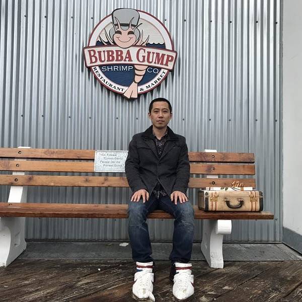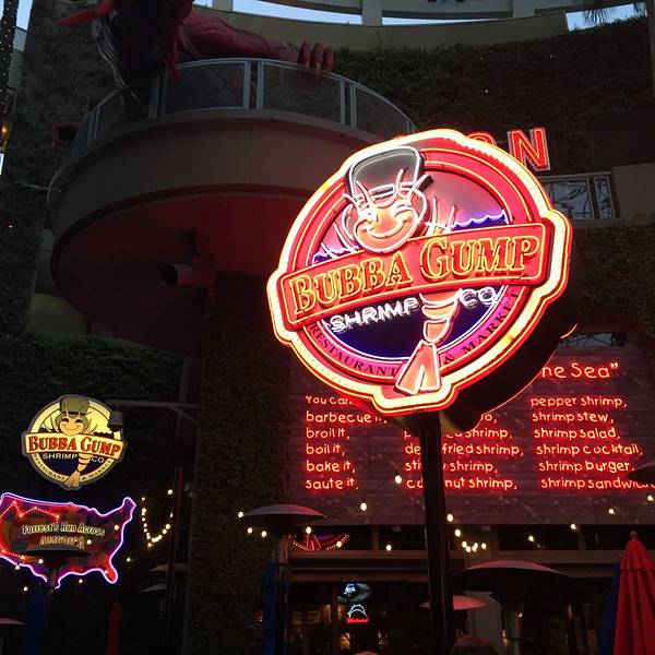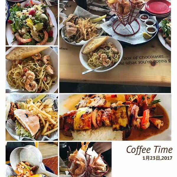 这里还想讲一个人,突然觉得很感动的一个人。顺带推荐个餐厅,我也是在网上看到的,Bubba Gump,因为Forrest Gump,所以餐馆很有名,餐厅前台处都是阿甘的宣传海报,经典台词,所以吸引了很多游客以及当地人,每次去都要排队,我去的时候,说还要排2小时才有空位,后来看我是一个人,如果我不介意的话就直接安排在吧台处稍微挤挤,看这么火,勉强一下吧!味道还OK。很有意思的是有一位寿星奶奶坐我旁边,今天刚好是63岁生日。因为我喜欢搭讪,所以,一个人要是单独吃饭,岂不是太孤独了,于是就和旁边的老奶奶聊起来,老奶奶夸我,年轻人不错啊,敢到处去玩,咋地咋地。餐馆所有人还一起为她唱了生日快乐歌,突然之间,脑袋里有一个怪问题,于是就问了她。