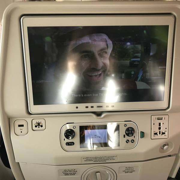一早到达机场,朝阳中看到了阿联酋航空的大飞机,早听说阿航服务好,很期待体验一次,然而也就一般般吧,并没觉得特别好,应该只是头等舱特别牛。机上宣传片,ice娱乐系统,提示:英文电影可以设置出来中文字幕的...一早到达机场,朝阳中看到了阿联酋航空的大飞机,早听说阿航服务好,很期待体验一次,然而也就一般般吧,并没觉得特别好,应该只是头等舱特别牛。机上宣传片,ice娱乐系统,提示:英文电影可以设置出来中文字幕的。餐食的味道一般般,只是餐具比一般航空公司要好,显得精致一些,但是发餐和收餐盘的速度很慢。