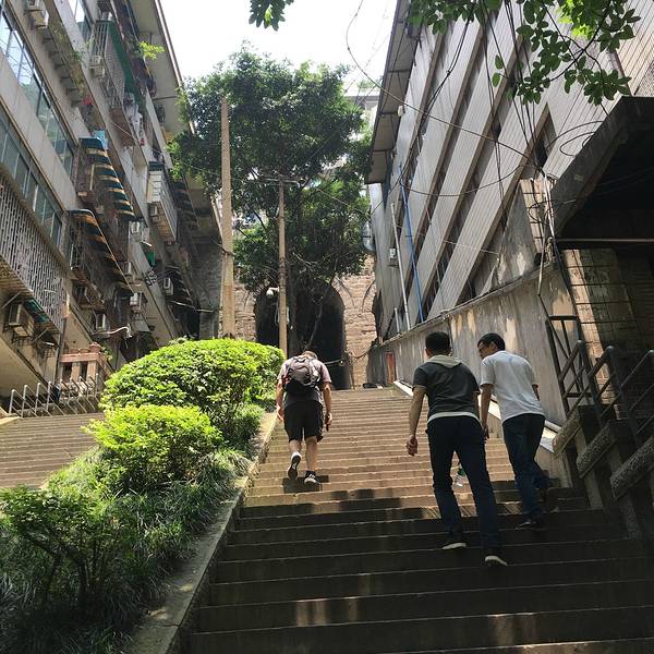 凯旋路电梯其实只是一个交通工具啊,从旁边的路绕下去需要十几分钟啊,这里直接下去就可以到十楼下面...凯旋路电梯其实只是一个交通工具啊,从旁边的路绕下去需要十几分钟啊,这里直接下去就可以到十楼下面的马路了,上面就是较场口市中心了