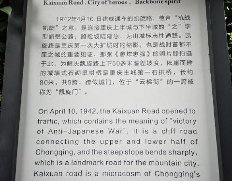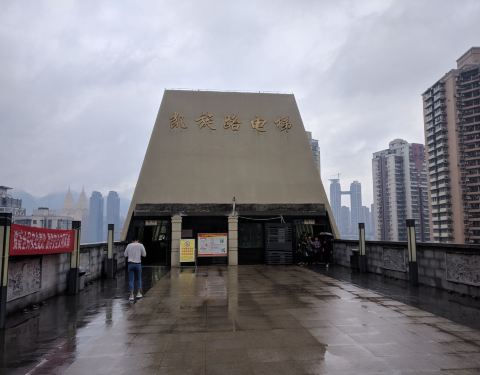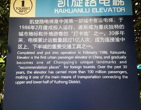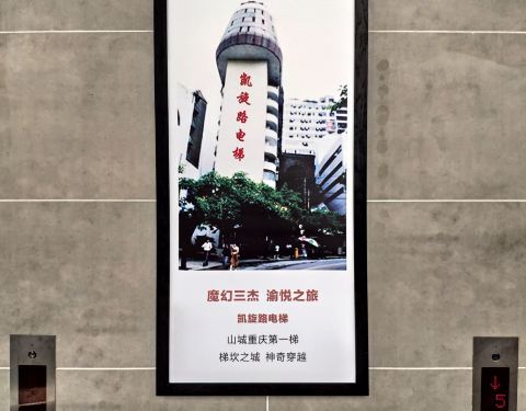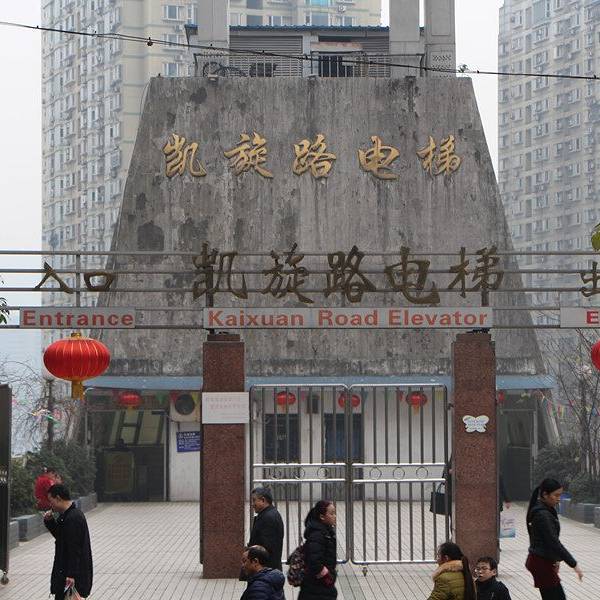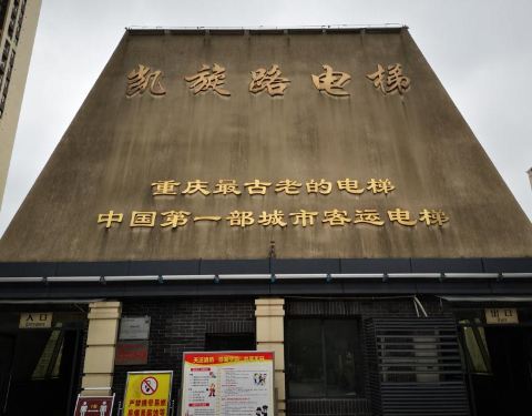 凯旋路电梯较场口入口处不仅新添了“山城重庆第一梯”的吊脚楼式景观小品和景点介绍为解决市民爬坡上坎之苦,1986年2月建成运营的凯旋路电梯是中国第一部城市客运电梯、重庆沿用至今最古老的电梯,最高峰日载客量1.4万人次。这个电梯有11层楼高,从公路边乘电梯下11楼,出来还是公路,这种神奇只...为解决市民爬坡上坎之苦,1986年2月建成运营的凯旋路电梯是中国第一部城市客运电梯、重庆沿用至今最古老的电梯,最高峰日载客量1.4万人次。这个电梯有11层楼高,从公路边乘电梯下11楼,出来还是公路,这种神奇只有重庆这种特殊地形才感受得到。凯旋路电梯较场口入口处不仅新添了“山城重庆第一梯”的吊脚楼式景观小品和景点介绍。电梯建筑顶部,新增的“重庆最古老的电梯”和“中国第一部城市客运电梯”的金色大字更是醒目,游客们大多以这些景致为背景拍照。对了,坐电梯1元,如果沿着楼梯走下去,也很有味道,高高的楼梯,旧旧的城门,很有时代穿越感! 展开