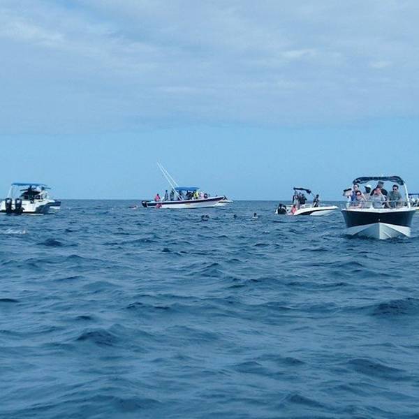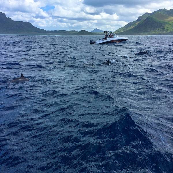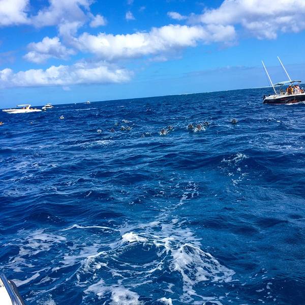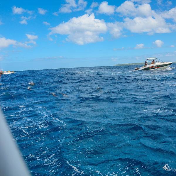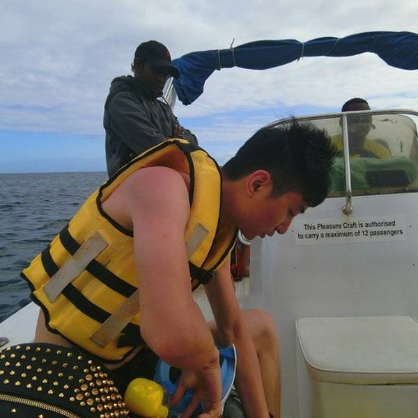 可以在海岸边的浅滩先搭乘一段小船,然后到海豚聚集的地方换乘游艇。