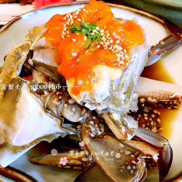 DAY2午餐: 大瓦房酱油蟹 作为米其林一星的老牌酱蟹店,得来 位置:在三清洞附近,所以可以从景福宫过来也可以从安国站过来。不得不夸一下大众点评。现在大众上简直太方便,导航也好使,地点也比较准确。 再说酱蟹,第一次没敢尝试的酱蟹,因为怕他是生的会腥气,但在第二次来首尔尝试后,就爱上了,上次吃的是普乐酱蟹(新沙洞店)酱蟹口感QQ的,像极了果冻,一点也不腥,好鲜好鲜!好么,我都不用拍,拍你俩就够了。 点了单人 酱蟹套餐,50000won(300人民币)除了上了一大只(4小块)酱蟹外,还上了一桌子小菜。又单点了酱蟹拌饭,28000wom,和烤鳗鱼30000won,反正这顿吃的比较美。