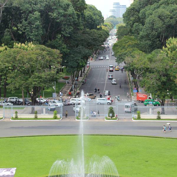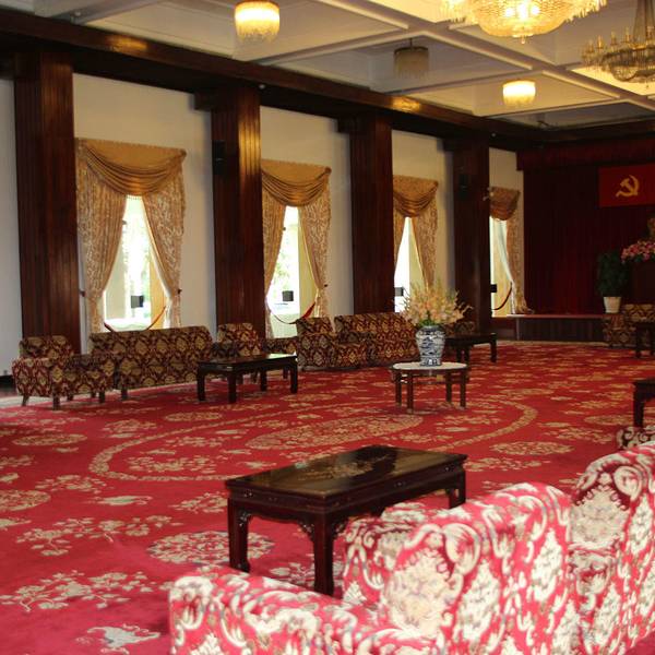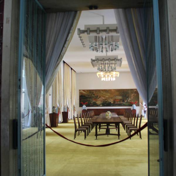 河内主席府位于巴亭广场附近,离胡志明墓不远,其主体建筑是一栋气派的黄色三层大楼,目前主要用于举行越南政府会议。这栋纯粹欧洲风格的建筑有着铁艺大门、古典列柱及壮观的楼梯,还有一个庄严的明镜大厅,许多重大的历史事件就发生在这里。不过,主席府的主体建筑内部是不向公众开放的,你只能从远处拍拍照片。这里还有一处胡志明故居,其实当年胡志明并没有住进这里,只是在那里接见外宾。越南统一后,此棚屋便以胡志明故居的名义列作遗址并加以维护。沿着主席府花园中的林荫道走就可以看到一座两层全木制的吊脚楼,里面陈列着胡志明生前使用过的各种物品。吊脚楼的下层是会客室,摆放着会议桌椅,除了立柱外没有墙,夏天可以避暑。上层有两个房间,左间是卧室,有一张普通的木床;右间是办公室,只有一张木桌和几把木椅。参观下来,你会真切感受到这个故居同其主人一样,简朴而雅致高洁。此外,主席府的花园幽静典雅,是散步的好去处。花园里种植着有趣而罕见的菩萨树,其根部会往上长,形成独特的形状,像是天然的雕像。