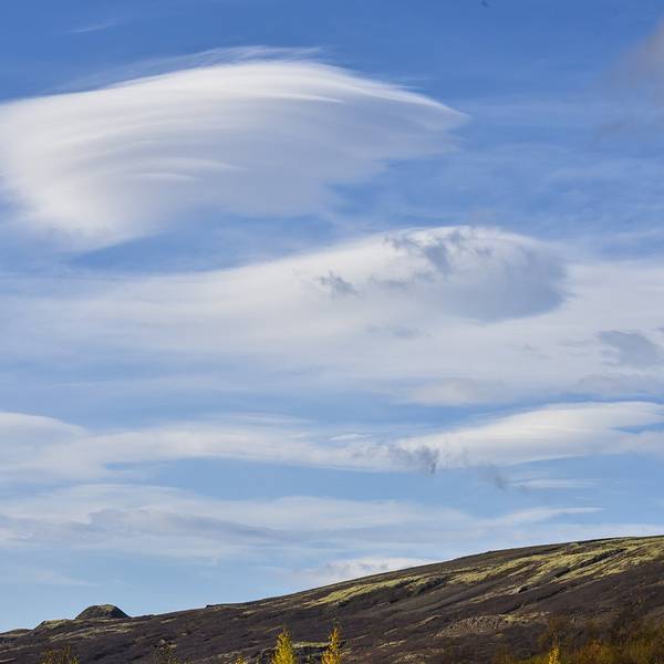 荚状云又名飞碟云,常被误认为外星飞船或不明飞行物(UFO)。荚状云通常会形成两层甚至更多层,荚状云主要的学名是荚状高积云,这个名字引用的是它们的外观,这些云彩更通俗的叫法是荚状云。而且当一串荚状云出现的时候,每一个云层都会爬上之前云层的顶部,这样就会产生一种著名的景观“波状云”。荚状高积云通常形成在下部有上升气流上部有下降气流的地方。一旦途经障碍物它就会恢复初始状态,形成一个空中驻留波形状,位于山脉的一侧。