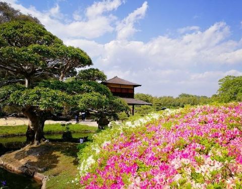 後樂園很大,裏面是各種日式庭院,還有很多花卉,真的是隨便拍都美後樂園在崗山城的對面,可以遠眺崗山城,很美的。後樂園很大,裏面是各種日式庭院,還有很多花卉,真的是隨便拍都美。 我當時沉迷寳可夢所以一路都在抓寳,跟隨著補給站瞭解每個景點的說明,很有日式風情的地方。