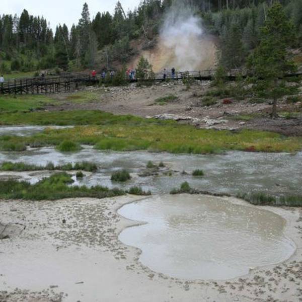 泥浆火山是黄石国家公园颇具代表性的地热景观之一,其形成与火山活动密切相关。该区域位于黄石湖北部,地壳深处的热源通过岩石裂缝传导热量,使地下水与火山气体混合形成沸腾泥浆。这并非传统岩浆火山,而是由黏土、岩屑和含硫气体构成的特殊地貌,喷发时呈现泥浆翻涌、酸雾弥漫的独特景象,喷口温度通常低于常规火山,部分区域甚至可感知凉意。 景区内分布着十余处地热奇观,游览木栈道贯穿泥浆池、间歇泉和硫酸湖等区域,游客可近距离观察微生物在强酸环境中形成的彩色生态垫。 作为地热研究重要基地,该区域通过科普展板系统阐释火山成因,并以沉浸式体验传递生态保护理念。景区严格执行生态保护政策,展现了原生地质与生命共存的独特样态。