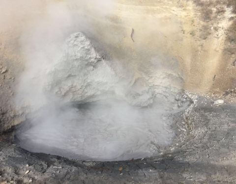 真是震撼大地啊,2年后,它开裂成如今这样一个冒着泡的泥浆池,热气腾腾,土地都能热成这样,真是蔚为奇观这一区域还有一个重要景点mud volcano泥火山。走在这一景区,就是脚下整块大地仿佛都在沸腾的感觉,非常独特。