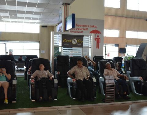 亚航专用的廉价机场,有投币的休息椅子,可能专门给过夜的人设置的