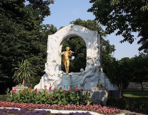 约翰施特劳斯雕像位于维也纳市立公园内,是维也纳的地标性建筑之一。这位被世人誉为“圆舞曲之王”的音乐家小约翰·施特劳斯(Johann Strauß)是奥地利人的骄傲,当地政府在维也纳的市立公园中安置了一座施特劳斯拉小提琴的镀金青铜全身雕像,以示后人的景仰和纪念。 历史背景 这座雕像于1921年6月21日落成,在落成仪式上,维也纳爱乐乐团演奏了小施特劳斯的不朽名作《蓝色多瑙河》,如今每到夏季,也时常会有乐团来此演奏。 而这座施特劳斯像位于一道白色的弧形拱门内,拱门上雕刻着精美的天使浮雕,拱门内,金色的施特劳斯正怡然自得地“演奏”着提琴,雕像前花团景簇,色彩缤纷。雕像前总是围满了慕名前来瞻仰的游客。 周边景点 市公园中央有维也纳何流经,宛如那首《蓝色多瑙河》贯穿园中,宁静优雅,漫步在公园中十分惬意。此外,公园中还有舒伯特、布鲁克纳等著名作曲家的雕像,可以前去瞻仰。