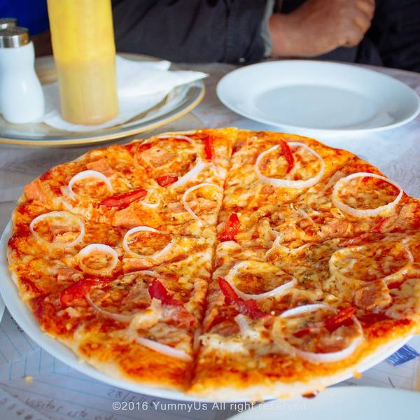 在餐厅可以免费享用各种口味的茶,还可以点一些蛋糕配着吃,一份巧克力蛋糕售价60卢比,很好吃!↑从茶厂出来,我们觉得真是太不好意思了,强烈要求请他吃顿饭,餐厅随便他挑。原本和Rohana商量先去吃午餐,当时已经下午2点多了。但Rohana怕我穿婚纱不方便,先送我们到住处换好衣服再去吃午餐,呜呜呜,好贴心!换好衣服我们决定不看大家推荐的地方了,直接让Rohana选餐厅。他害羞的问我们吃不吃披萨,他知道一家很好吃的披萨店,一听到不吃当地菜我们立马点头。