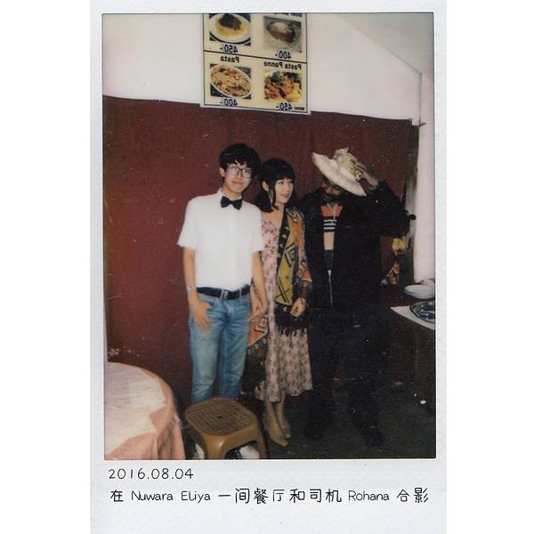 Rohana催促我们上车,我们给他买了个汉堡怕他饿了。后来他还是婉拒,还跑走在外面等我们吃完,我们特别不好意思,后来胖洲眼馋把它吃掉了。↑Rohana让店主用拍立得给我们拍了好多张合影,这张我最喜欢啦。当时店主把我的草帽扔在Rohana头上,按下快门键,抓拍到了Rohana正准备取帽子的样子,但他不太喜欢,因为他只有半个脑袋,好萌哈哈哈!