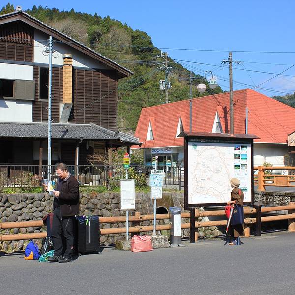 然后坐Kirishima 到雾岛神宫站,准备去这座美丽的神社看看。车站外面有几辆出租车,和一个简单的站牌,这就是我们要等巴士的地方了。就在我们研究该坐哪辆车的时候,这位奶奶主动问我们要去哪里,并告诉我们该坐...
