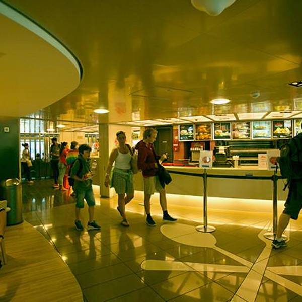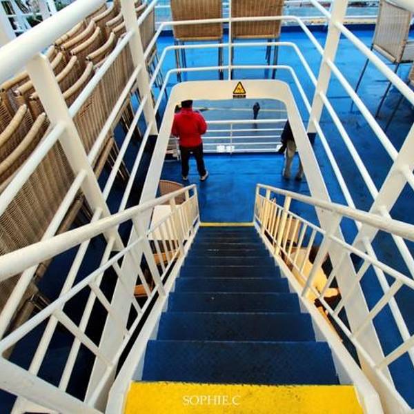 - 踏上甲板以后发现船里竟然还有扶手电梯!从来没有坐过大轮船的我,兴奋异常,看什么都新鲜