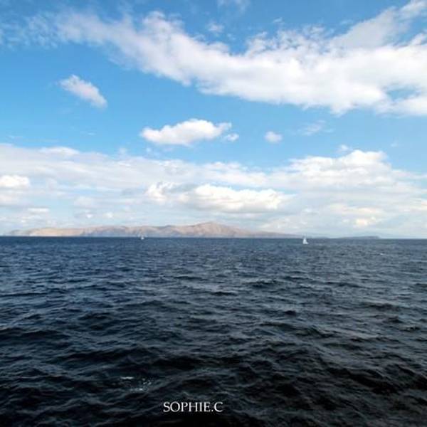 雅典天亮的很晚,我们早上六点起床赶往码头的时候,天空连微亮的意思都没有。Piraeus港口却热闹异常,靠岸的大船灯火通明,透过船窗看进去都是人头攒动,船务公司也是人声鼎沸,挤满了取票和准备登船的游客们。从来没有坐过大轮船的我,兴奋异常,看什么都新鲜。上船的档口总共有三条,左边供行人通行,中间最宽,可供小轿车直接开入船舱中,右边是搬运货物的通道。踏上甲板以后发现船里竟然还有扶手电梯!我们按照工作人员引导找到了自己的船舱,空间宽敞,舱位比普通的飞机舱位要大得多,前后都有可以置放行李的地方。舱内铺着厚厚的绒地毯,行李箱可以直接放在所有舱位的最前方,不用担心箱子会滚来滚去,而且在自己视线范围内也不用担心被别人误拿。 正点应该是7:25开船,7点刚过轮船已经开始鸣汽笛放音乐,提醒还没有码头上的游客们抓紧时间登船。我们站在甲板上看着晨曦中的雅典码头出神,短短十几分钟时间,天空从最初的鱼肚白慢慢过渡到淡粉再到橙红最后到艳丽的烫金色。因为懒而从来没有看到过日出的我,万万没想到,第一次看日出竟然是在爱琴海上,看着一轮橙红的太阳从雅典古城的建筑群中冉冉升起,在爱琴海上留下粼粼波光,内心的激动没办法用言语说明。船缓缓驶离比雷埃夫斯港,港口附近林立的高低建筑错落无序,陈旧黯淡,码头附近车流滚滚,行人如织,衬着晕红的晨光,这幅热闹却杂乱的画面竟然像极了儿时记忆中的家乡。90年代初的二线小城,也是这样陈旧灰暗的基调,但是人来人往,热热闹闹,人情味浓厚得很。