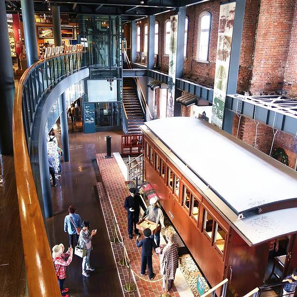 馆外,经典SL列车到昭和时代的特快列车等老式车厢排排停靠,钻进车厢,你会看到一个与现代全然不同的内景。馆...九州纪念博物馆是明治时期建造的,当年用红砖砌成的旧九州铁道总部大楼被改造成了如今的铁道纪念馆。