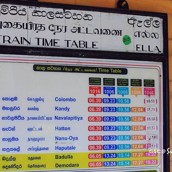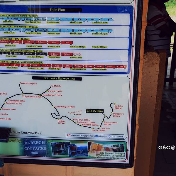 Haputale火车站,有点情调吧。车站小归小,可列车时间表、各站之间距离和用时、票价表一个都不少