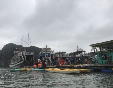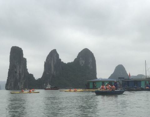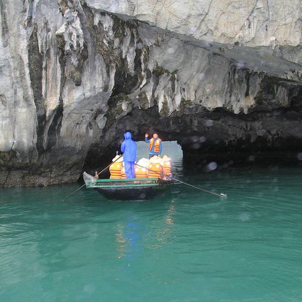 邮轮在渔村的停40分钟,游客可以在这里租皮船或者坐小船(4-5人/船)探索下龙湾美丽的穿洞邮轮在渔村的停40分钟,游客可以在这里租皮船或者坐小船(4-5人/船)探索下龙湾美丽的穿洞。开船的渔民跟我们说,有台风的时候,这里的渔民都把船开到穿洞躲台风。