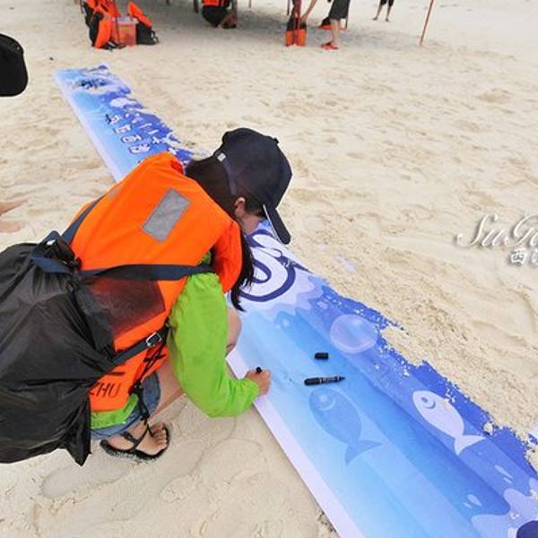 在全富岛上会有一个登岛后的签字活动,每个人会把自己的名字写在一张蓝色的大条幅上,因为我去龙洞,到这里的时候已经三点了,没能赶上那个签字活动,心里还是有点小遗憾的,可谁的生命里没有点遗憾呢 展开