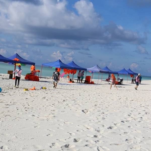 在全富岛经常可以看到洁白的珊瑚砂上立着一两躲非常漂亮的珊瑚~西沙群岛的水非常清澈,能见度高达40米全富岛是三座岛中最小的一座。岛上只有一根旗杆,一块岛名牌以及1个军用太阳能装置。岛上除了我们,连渔民都没有。曾有海员试图在岛上种植植物,最终还是失败了。全富岛和鸭公岛不同,地表是非常细腻的白色珊瑚沙...全富岛是三座岛中最小的一座。岛上只有一根旗杆,一块岛名牌以及1个军用太阳能装置。岛上除了我们,连渔民都没有。曾有海员试图在岛上种植植物,最终还是失败了。全富岛和鸭公岛不同,地表是非常细腻的白色珊瑚沙。由于全富岛比较浅,所以海水显出绿色和浅蓝色,非常漂亮。 展开