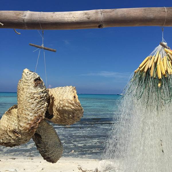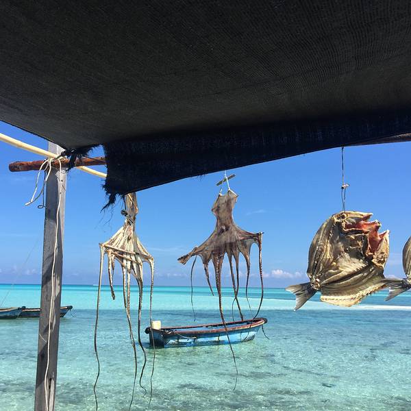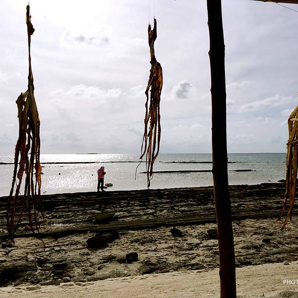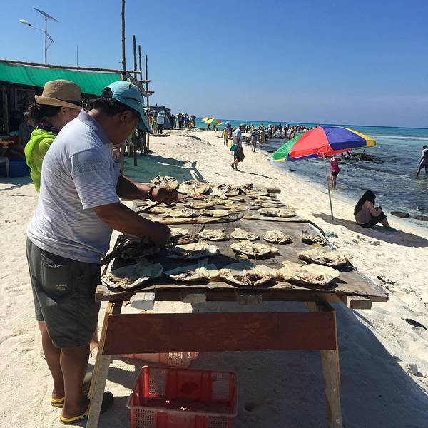 远观即将到达的银屿岛,仔细瞧这才发现这白色居然是洁白的沙子。真正的看到了什么叫做海天一色的美景。行走在这里,完全没有了往日的浮躁,即使阳光普照,感觉炎热随行,但是依旧让人感觉激动,兴奋,根本没有时间去计较是否会被晒黑之类的问题。在岛上,遍地到能够看到大大的砗磲,还有晒着的鱼干,和为数不多的几座简陋的渔民小屋。