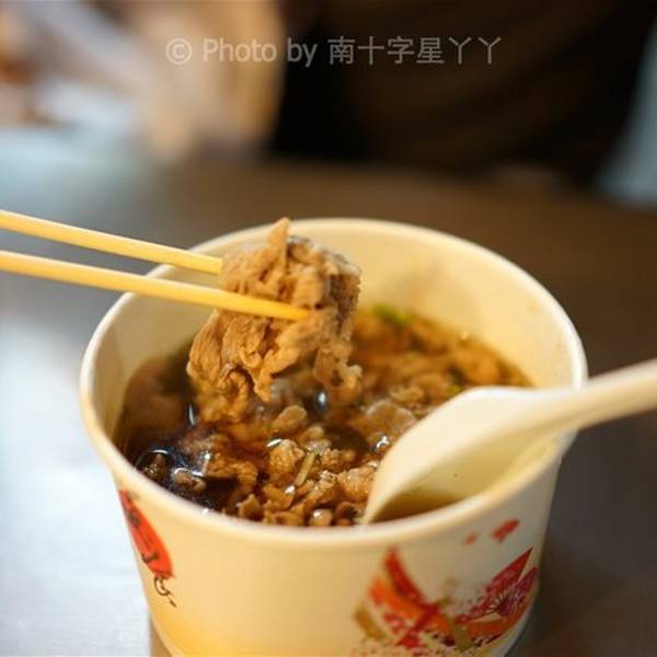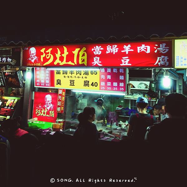 【阿灶伯 当归羊肉汤】NT$67 强推!!!!!!!! 阿灶伯的羊肉汤说真的还挺挑人的... 羊肉是热气羊肉,当场烫煮,相当实在!!肉是又厚有多!!个人觉得羊肉味很浓郁,吃不惯的人会觉得膻~ 然而,在怂看来不膻的羊肉就像不美的女人,没用~ 汤底的当归中药味还挺浓郁,配上羊肉的鲜味,个人觉得无比完美~ 倒是怂妈,表示一万个吃不惯,咳咳... 见仁见智吧~【内用请至后面土地公庙】 阿灶伯 外带和内用的队伍不在一起,门口竖了小牌牌,怂妈用字正腔圆的普通话读了一遍【内用请至后面土地公厕】... 周围一片寂静.. 一片寂静.. 寂静.. 阿灶伯内用的队伍要绕道门店后面,嗯,我就瞅了一眼,默默的下定决心,就算我蹲在地上端着吃我也不要排那个怒长的队伍!!! 咳咳,然后我的梦想就实现了,并且,怂妈嫌弃的看了我一眼,欢天喜地的嘲笑了一番,扔下我去看公庙的大火球表演了~咳咳... 我想来拍照的时候,肉已经被吃了差不多了,相信我,肉真的很多!!!!!掏一掏,源源不绝的出现~! 哦对,后来,怂真的找了个路灯,蹲在边上,把一整碗阿灶伯给吃了~ 而且,在我的带领下,边上又出现了一对、两对、三对小情侣,上演着,我来端-小心烫-我喂你吃 的温馨画面... 泯灭人性!!!