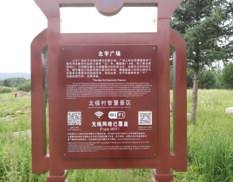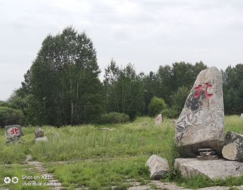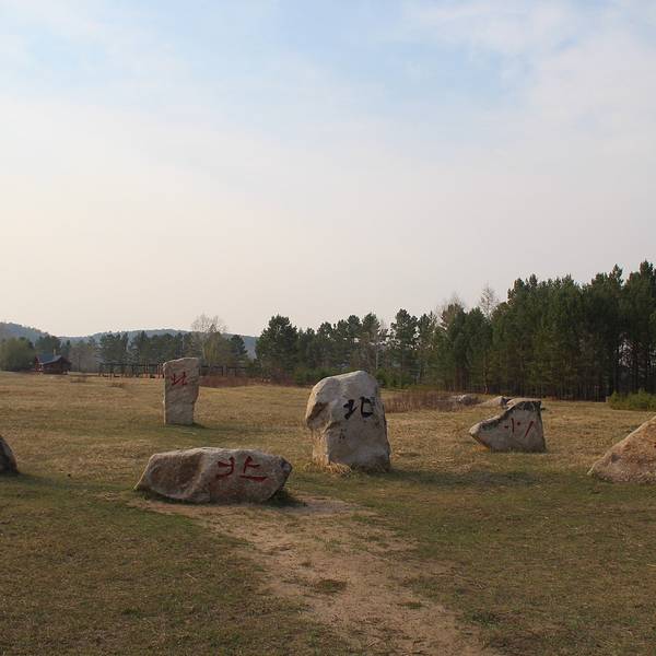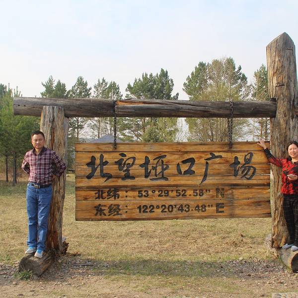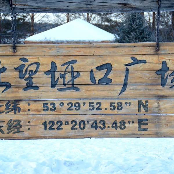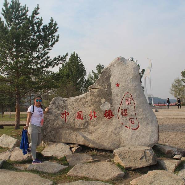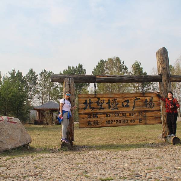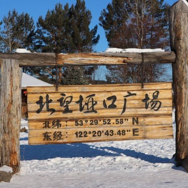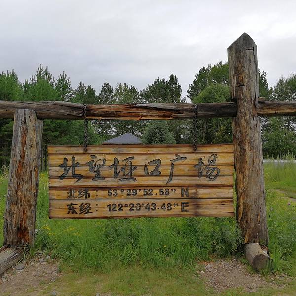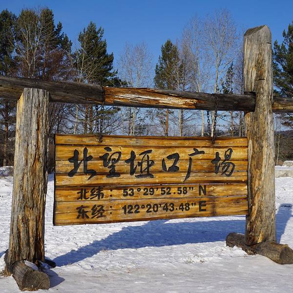 广场有各种北的标示,体现着“北”的文化,各种文字、标志物和建筑。在这里,...北望垭口是我国最北端的广场,东经122°20'43.48〃E,北纬53°29'52.28〃N”的标志就立在这里,旁边一块巨石上刻着“中国北极点”。