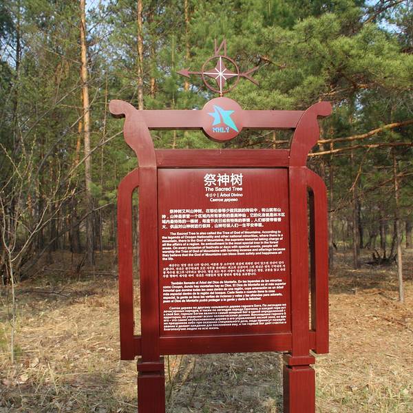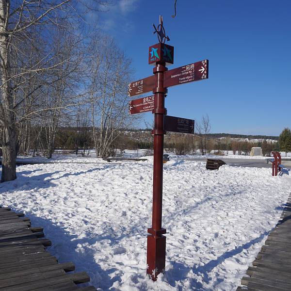 广场有各种北的标示,体现着“北”的文化,各种文字、标志物和建筑北望垭口是我国最北端的广场,东经122°20'43.48〃E,北纬53°29'52.28〃N”的标志就立在这里,旁边一块巨石上刻着“中国北极点”。