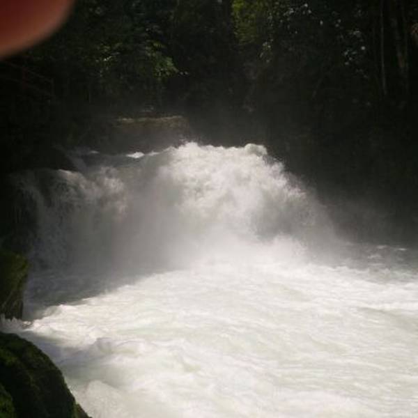 青龙潭轰鸣而下,好壮观。水好甜,我们喝过的。