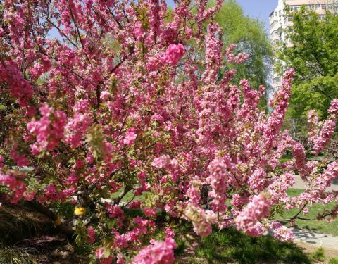 北京北三环北太平桥东路南的双秀公园,园子不大,不过这时节可以欣赏晚樱,开得繁盛。还有多种其它的花卉北京北三环北太平桥东路南的双秀公园,园子不大,不过这时节可以欣赏晚樱,开得繁盛。还有多种其它的花卉。再过一周牡丹就该开了,晚些还有芍药。