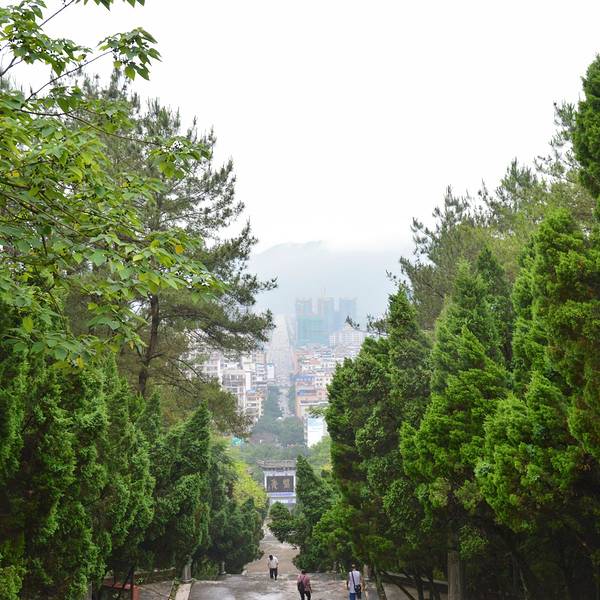 游览烈士纪念碑、清幽雅致的北山古寺,在贤令山森林里徒步寻找当地有名的摩崖石刻时,遇到强雷电暴雨,大量的雨水汇成汹涌的溪流从各处往山下疯狂奔突,山路非常泥泞难行,雨伞也只招架了一会儿就彻底投降了。