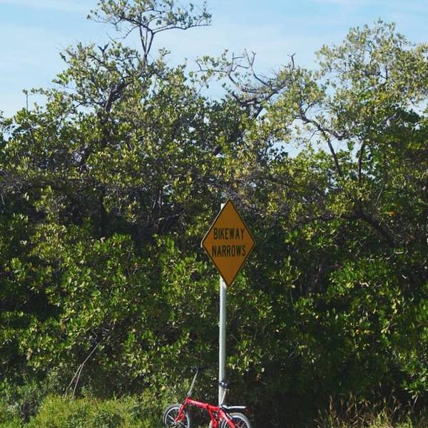 开了1个多小时到了Key Largo就开始是海上公路啦。但是因为Oversea Highway的前半段岛屿比较集中,路开在岛屿中间。两侧基本都是树和房子,只能从间隙看到浅蓝色的影子,恨不得把树都拔了…嫉妒那些海边有房子的老美,每天开门都有海景。他们大多自己有快艇,心情好就开出海垂钓。一号公路也适合骑行或者徒步,有专门的自行车车道。