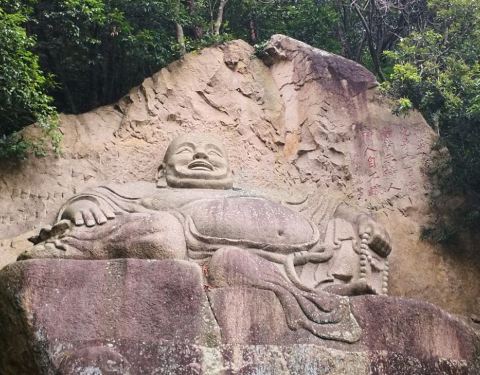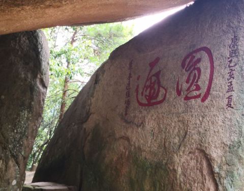 这个寺院在天台宗历史上有着重要的地位,还是值得去的,交通方面有必要说明一下,去时很方便,只要搭北站去石梁的中巴,中途下车即可,下车后穿过隧道,沿盘山公路往下走即可,我们老实地走了半个多小时才看见山谷间出古寺,后来才知道,其实在半路上有一个破旧的亭子处有一个下山的近道,有台阶的,从这里走可以省一半的路。 回程的路就麻烦了,因为去石梁的中巴车回程不是原路返回的,而且我们在路边等了很久,发现从这条路下山的车子极少,只好边往山下走边碰运气。还算好,走了四十多分钟,碰见一辆回程的出租车。现在高明寺在整修,将来也许修好了,有专线车辆了,就方便了,否则不是自驾或是租车,去之前要三思。