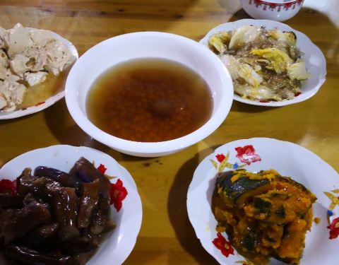 从国清景区开车大概20分钟左右到了高明寺,还是正直当天有办法事,结束以后还是挺清静的!只是寺庙还在建设中,拜佛许愿之后,中午还吃了斋菜,多的一桌是教徒吃的,少的一桌是散客,每位10元,小孩不算,4菜1汤,还可以加饭加菜!