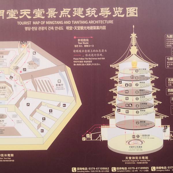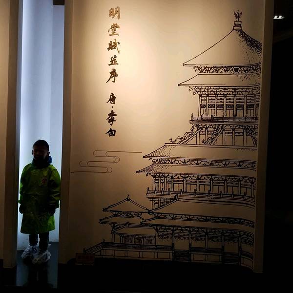 大殿让上去坐龙椅拍照,八十元。表演,上台排照收费一人三十,可以在台上坐着慢慢看。入住的一家民宿,厂房改建,离铁路有点近,不过还好,旅行太累也睡得很好。主人是一名设计师,房子很有设计感,处处精致!利用灯投影在幕布上,老公不说我都没注意到,原谅我缺少艺术细胞。我们烤串的小院子,放...入住的一家民宿,厂房改建,离铁路有点近,不过还好,旅行太累也睡得很好。主人是一名设计师,房子很有设计感,处处精致!利用灯投影在幕布上,老公不说我都没注意到,原谅我缺少艺术细胞。我们烤串的小院子,放进来许多蚊子,咬了我们三个一身包!老公,我也要一个这样的浴室凳。继续冒雨前进,明堂天堂室内景区,原址复建。山寨货明堂,武则天治国理政的地方。大殿让上去坐龙椅拍照,八十元。体会武则天君临天下的感觉,赶时间遗憾错过。表演,上台排照收费一人三十,可以在台上坐着慢慢看。我们没看表演,错峰去参观,此时人少。儿子喜欢李白!一听说李白赞美明堂的诗,立马跑去合影。原来的明堂,双屋顶只有皇家才可以用。三层的建筑,安史之乱烧毁,复建只有这一层。明堂,就是明亮的大房子,这是明堂的演变史,最初一个大草房子。之前儿子看的那张中心柱遗址,看这张图就懂了。万朝来贺,唐朝我们多牛x。武则天时明堂屋顶的凤,象征着女权!凤尾翘着的。历害的都支毛啦!烧毁后复建用了避火珠。武则天给李治,治国十二鉴言。武则天时有名的臣子,第一位的当然是狄仁杰武则天自己造的字介绍神都洛阳的电影,每半小时循环播放神都洛阳的夜晚,有宵禁,晚上不让出门,所以电视剧里经常看到男主人公背着女主人公挨家挨户的敲门。白天站在中心柱位置会有回音,其他地方没有,很神奇,一定要感受一下,喊两嗓子!中心柱遗址,导游提示文明参观,不要往里扔钱!动画展示明堂失火被烧过程,明堂烧过两次,一次失火,一次安史之乱!天堂是武则天理佛的地方,赶火车匆匆看过,提示一定要坐电梯到九楼,再一层层往下参观。天堂在外看五层,室内九层,象征九五至尊。郑州火车站还有这样的售货厅电梯里有凳子,也是第一次遇到 展开