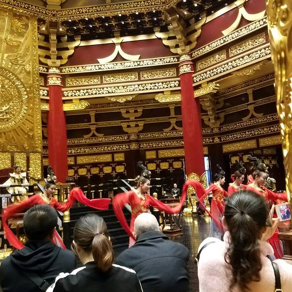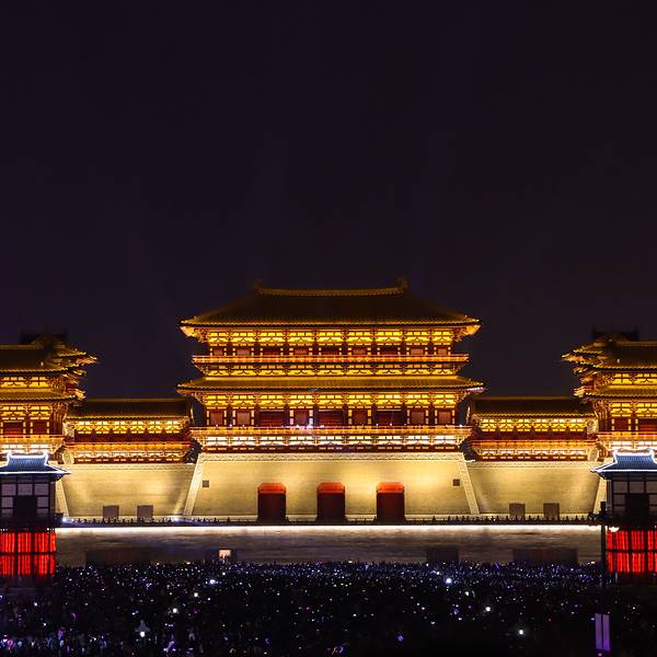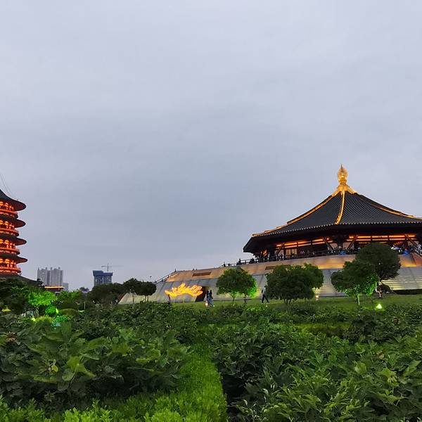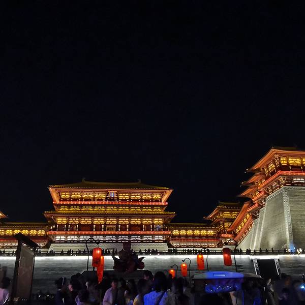 从牡丹园出来后,手余牡丹的香气来到【隋唐洛阳城】这座史上第一位女皇帝——武则天登基的城市,市区上方日月当空,月亮也显得格外耀眼。隋唐洛阳城【明堂、天堂、天枢】等建筑是昔日女皇武则天理政、理佛、生活的重要场所,夕阳西下,建筑物上的灯光亮起,各大宫殿显得更加金碧辉煌隋唐洛阳城来这里比较推荐下午来,晚上再走,趁着还没天黑,这里有很多身着汉服的游客,在这里拍照,等到夜幕降临,大殿的灯光亮起,灯火通明,犹如穿梭到繁荣的盛唐时期,琼浆玉液饮不尽,琵琶艺姬舞不休隋唐洛阳城舞台剧表演来这里比较推荐下午来,晚上再走,趁着还没天黑,这里有很多身着汉服的游客,在这里拍照,等到夜幕降临,大殿的灯光亮起,灯火通明,犹如穿梭到繁荣的盛唐时期,琼浆玉液饮不尽,琵琶艺姬舞不休隋唐洛阳城几束大灯打在大殿正前方的【应天门】上,【应天门广场】上汇集了数以万计的游客,只为正面目睹其尊荣应天门广场 展开