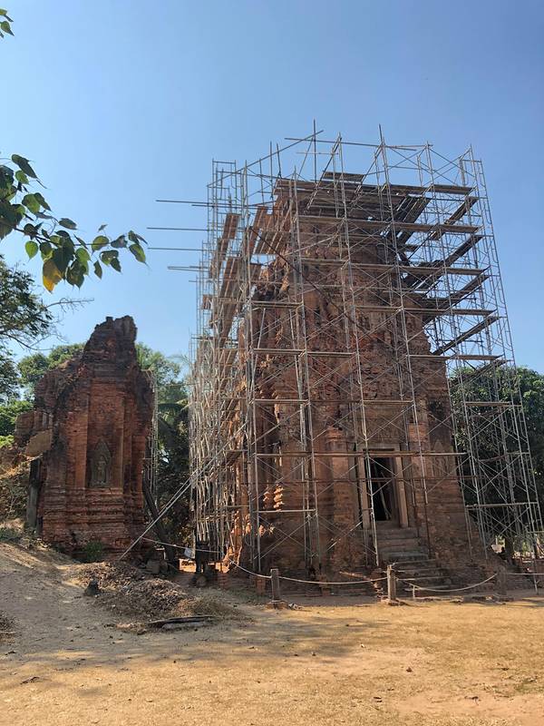 从崩密列回来先去了罗洛寺群中的罗雷寺。罗洛寺群被称为高棉文化的开端,是吴哥王朝早期的建筑群。吴哥王朝的创立者阇耶跋摩二世曾建立了数个首都,罗洛寺群是第二个,吴哥王朝在此定都70年。